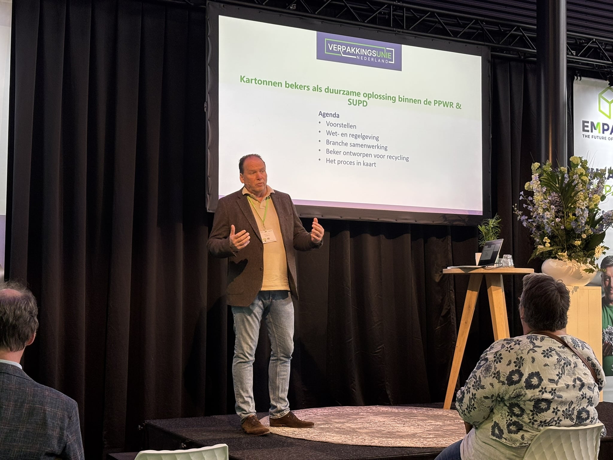 Tjalling van Looy gaf een presentatie over kartonnen bekers en het door de branche opgezette inzamelsysteem binnen de PPWR & SUPD. Hij besprak wat deze regels concreet betekenen en hoe een goed inzamelsysteem kan bijdragen aan een circulaire economie.